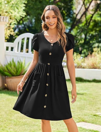 Zeagoo Womens Summer Dress Mini Petal Short Sleeve Dresses Pleated Button Down V Neck Floral Beach Swing Vacation Dress 2025